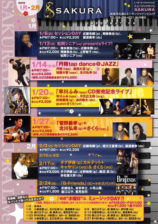 大好きなJazz & オーガニックくれよんさんでのライブです。翌日はミュージックカフェSAKURAさんへは初めて伺います!ママのさくらさん(vo)とのコラボレーションも楽しみです。岐阜市方面の方是非!!