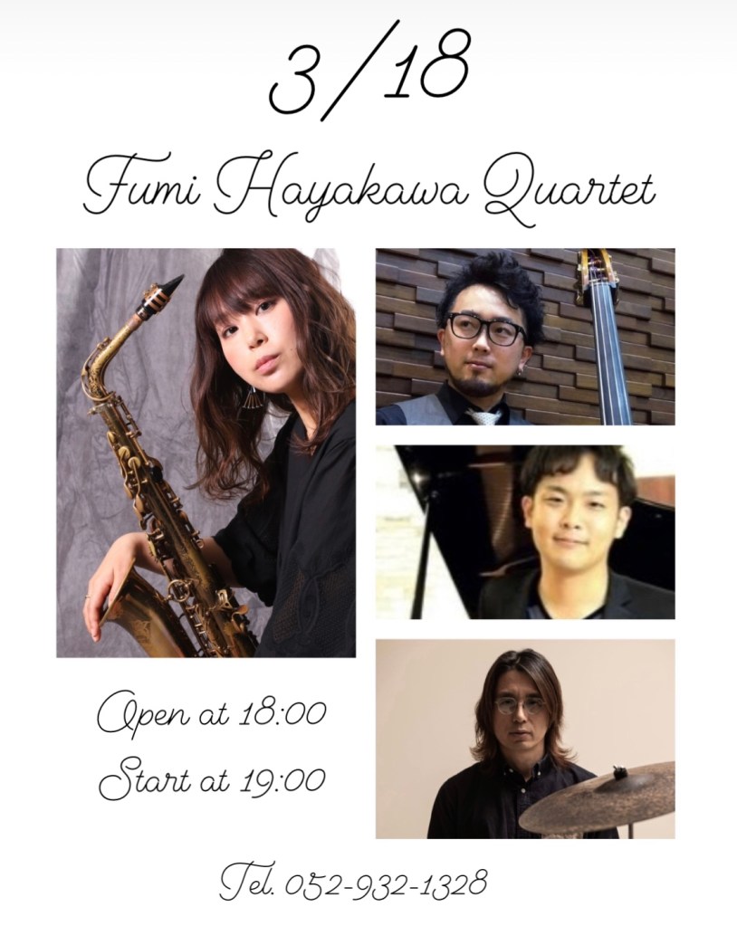 3/18 早川ふみ4 fumihayakawa Uncategorized 3月 5, 20213月 9, 2021 1 Minute “早川ふみカルテット” 3/18 (木) Live at Jazz Spot Swing アルトサックス+ピアノ、ベース、ドラムという王道のワンホーンカルテットの編成で、新栄のスイングに出演致します。 共有: クリックして X で共有 (新しいウィンドウで開きます) X Facebook で共有するにはクリックしてください (新しいウィンドウで開きます) Facebook いいね 読み込み中… 投稿者: fumihayakawa 名古屋を拠点に活動するジャズサックス奏者早川ふみです。 fumihayakawa の投稿をすべて表示 公開済み 3月 5, 20213月 9, 2021