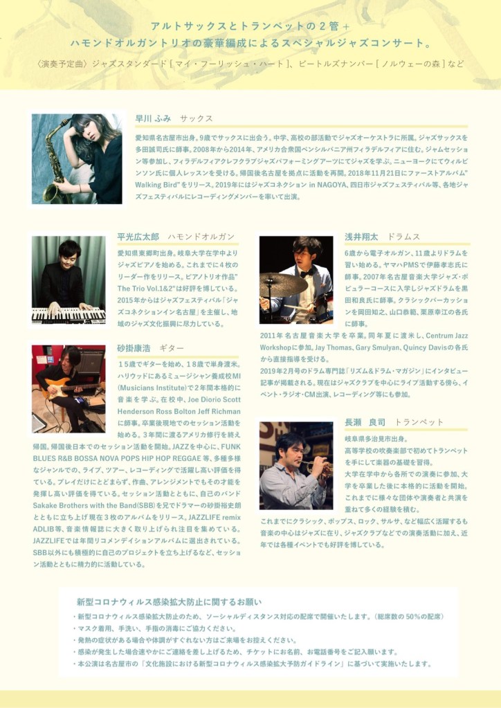 ファーストアルバムのメンバーで初のホールコンサートを開催致します。広い会場で思い切り演奏したくさんの方に楽しんで頂ける様準備を進めて参りました。